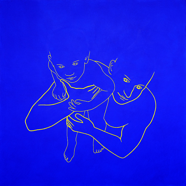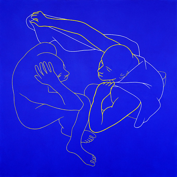 Ujímať sa pocestných (Svätý Krištof), zo série 7 skutkov telesného milosrdenstva, 2022, akryl na plátne 140 x 140 cm, foto: Dorota Sadovská