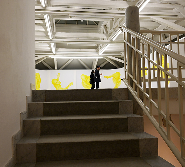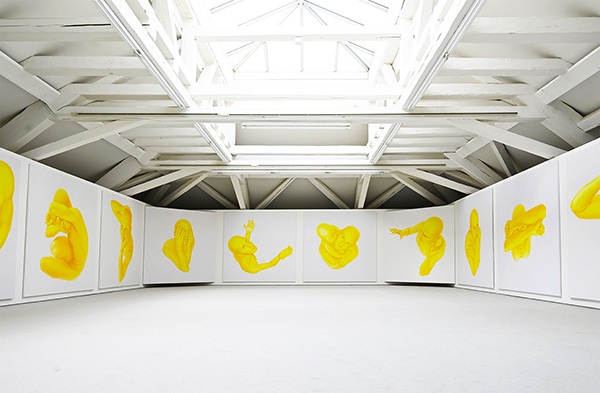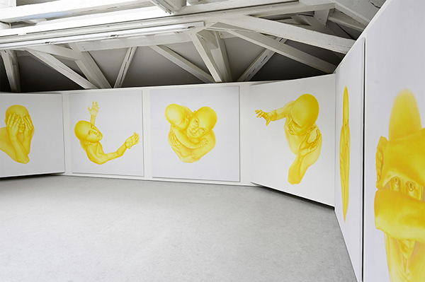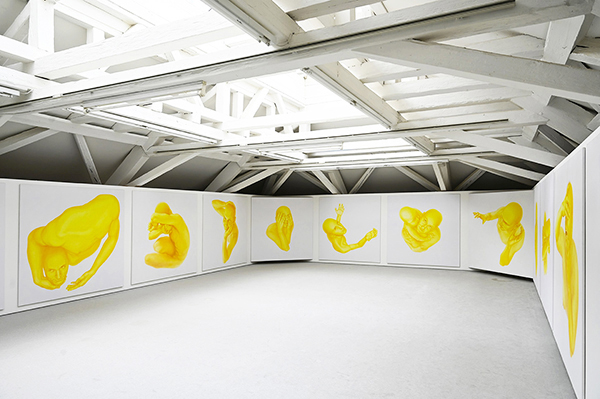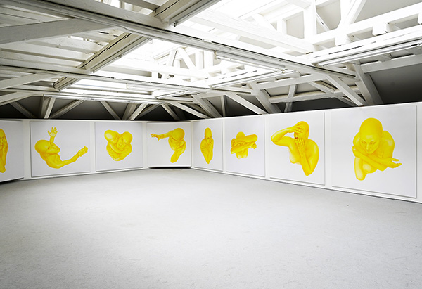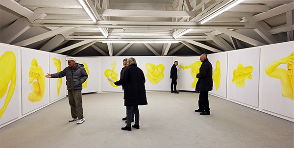 Žltá cesta, 2023, inštalácia 14 malieb, každý 190 x 190 cm, Künstlerhaus Bregenz, Rakúsko