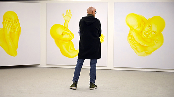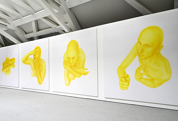 Žltá cesta (Svätý Vavrinec, 2017, Svätá Apolónia, 2017, Svätý Dinýz, 2016, Svätý Štefan, 2014, Svätý Tomáš Akvinský, 2014), 2023, inštalácia 14 malieb, každý 190 x 190 cm, Künstlerhaus Bregenz, Rakúsko