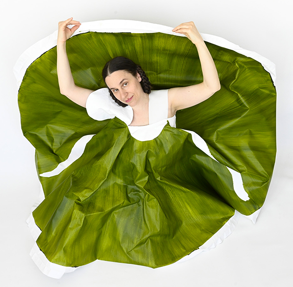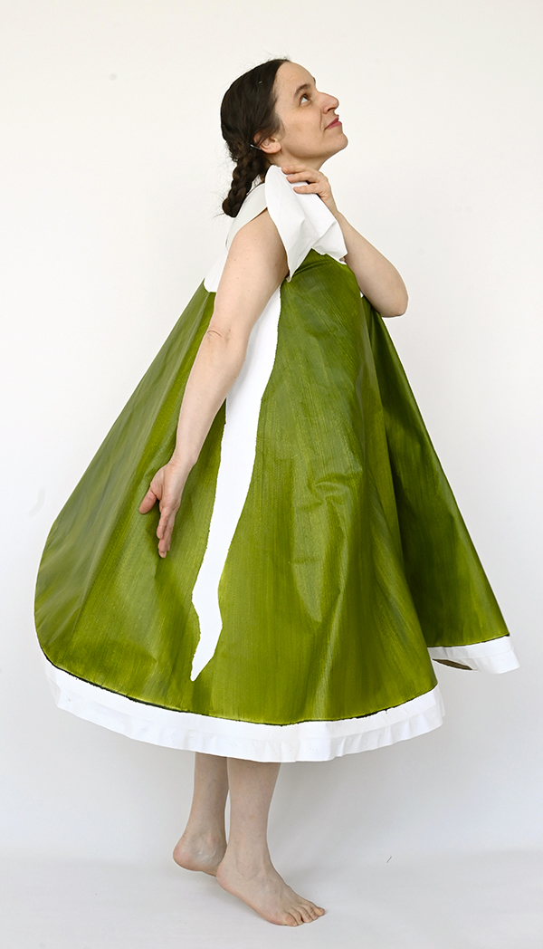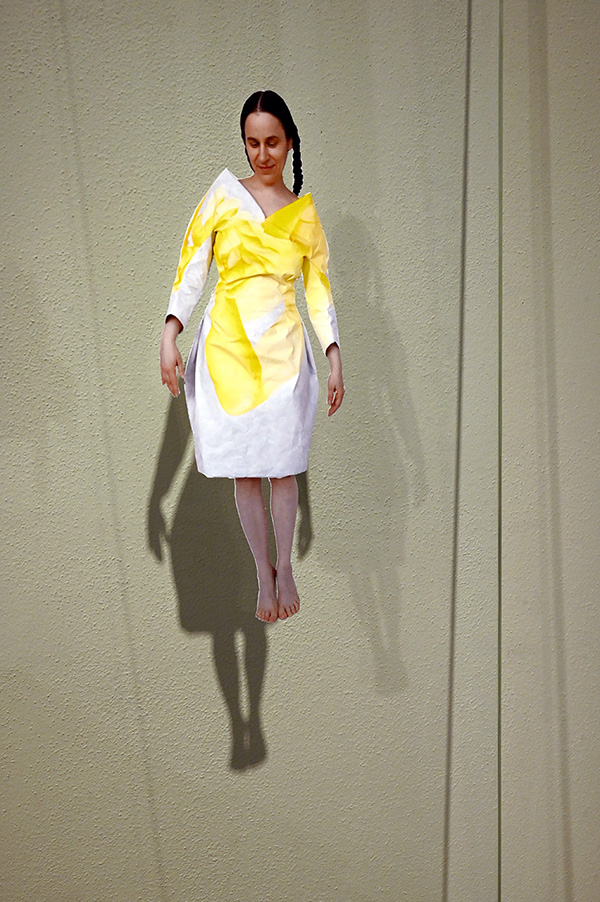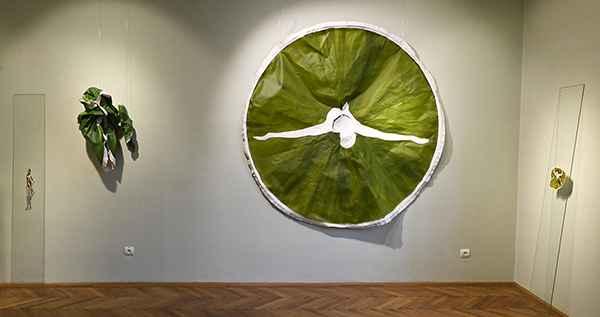 Pohľad do výstavy „Móda bez pravidiel“, 2023, Rosenfeldov palác, Žilina, šaty z mojich malieb
